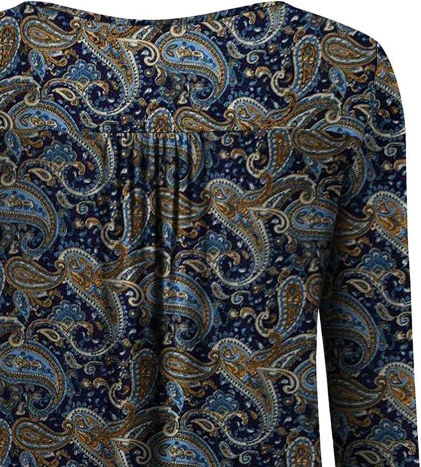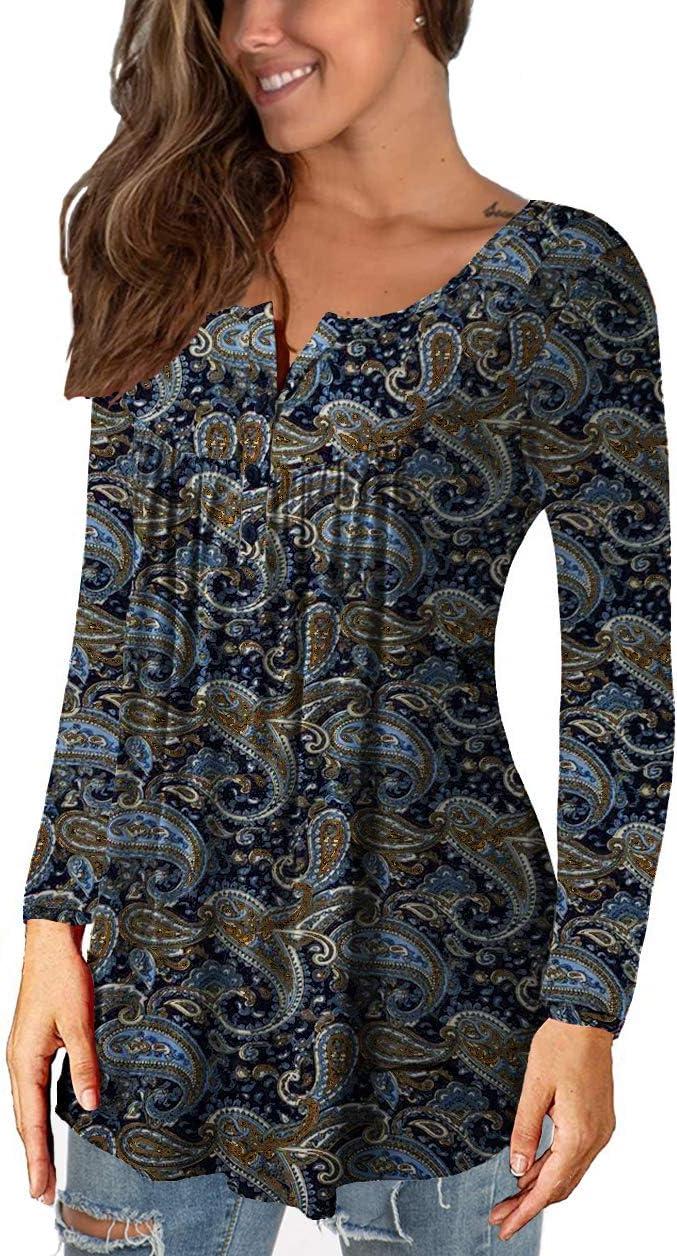 a.Jesdani Plus Size Tunic Tops Long Sleeve Casual Floral Printed Henley V Neck Shirts for Women(Navy)