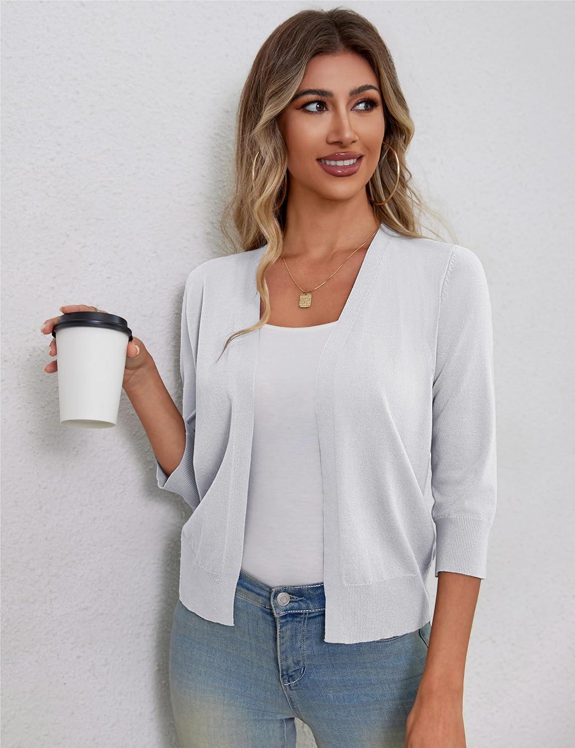 a.Jesdani Shrugs for Women Lightweight 3/4 Sleeve Open Front Red Cropped Cardigan Sweaters(1 White)
