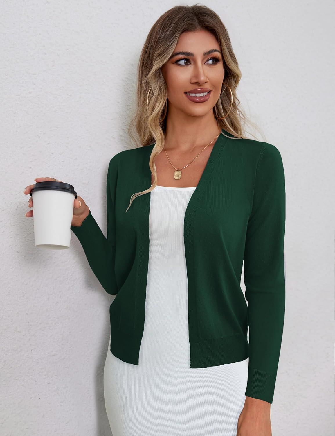 a.Jesdani Shrugs for Women Lightweight 3/4 Sleeve Open Front Red Cropped Cardigan Sweaters(10 Green)