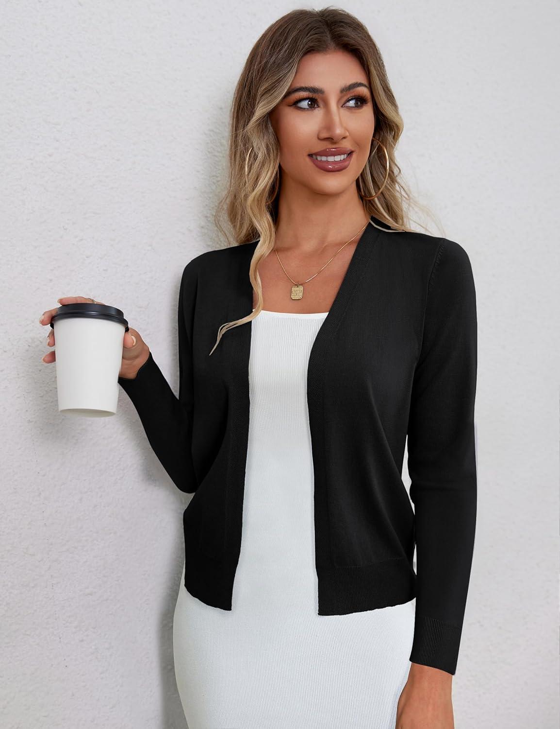 a.Jesdani Shrugs for Women Lightweight 3/4 Sleeve Open Front Red Cropped Cardigan Sweaters(11 Black)