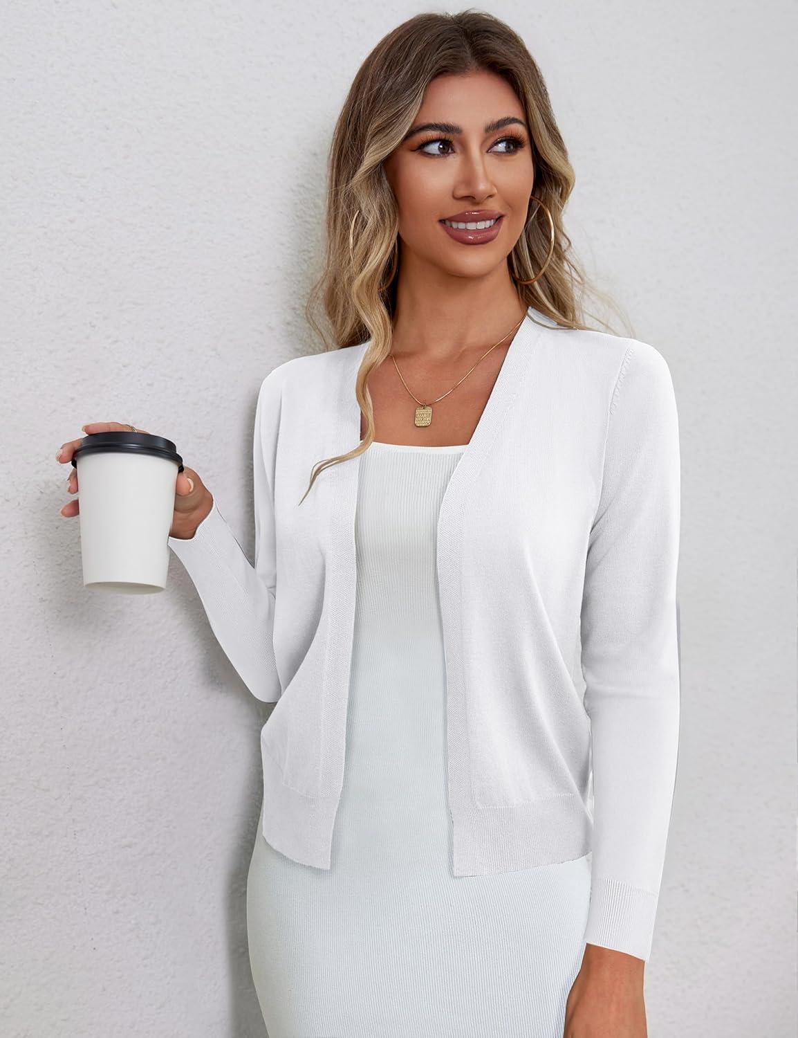 a.Jesdani Shrugs for Women Lightweight 3/4 Sleeve Open Front Red Cropped Cardigan Sweaters(13 White)