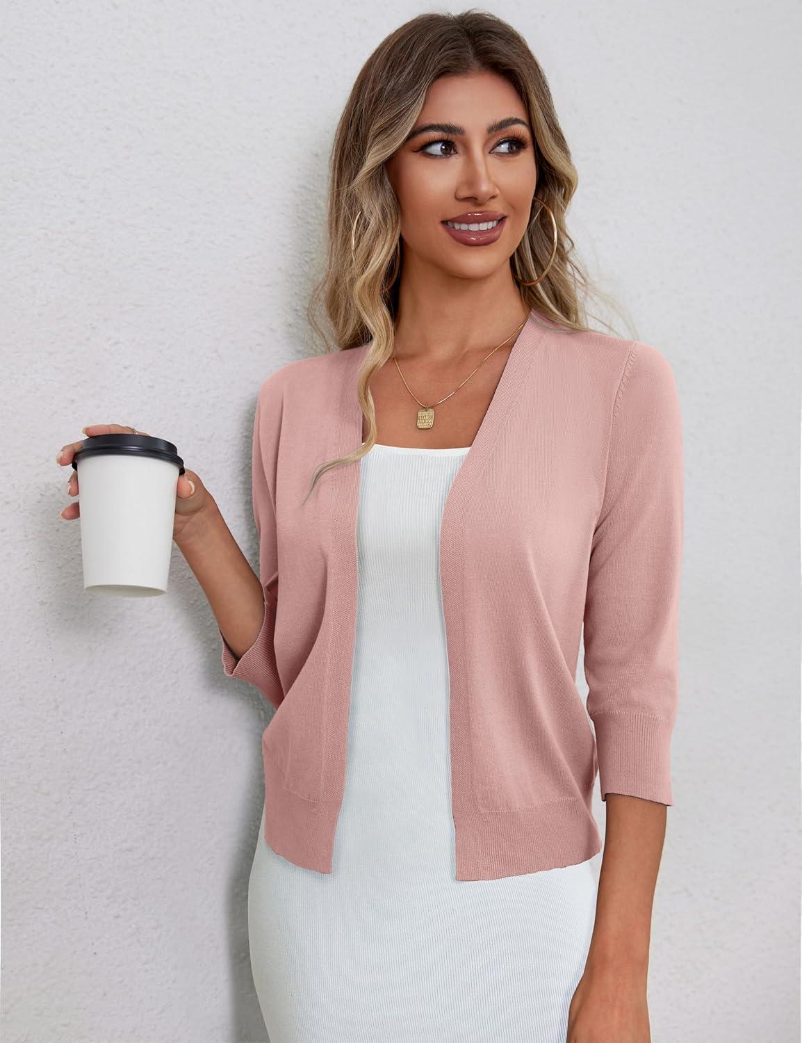a.Jesdani Shrugs for Women Lightweight 3/4 Sleeve Open Front Red Cropped Cardigan Sweaters(5 Pink)