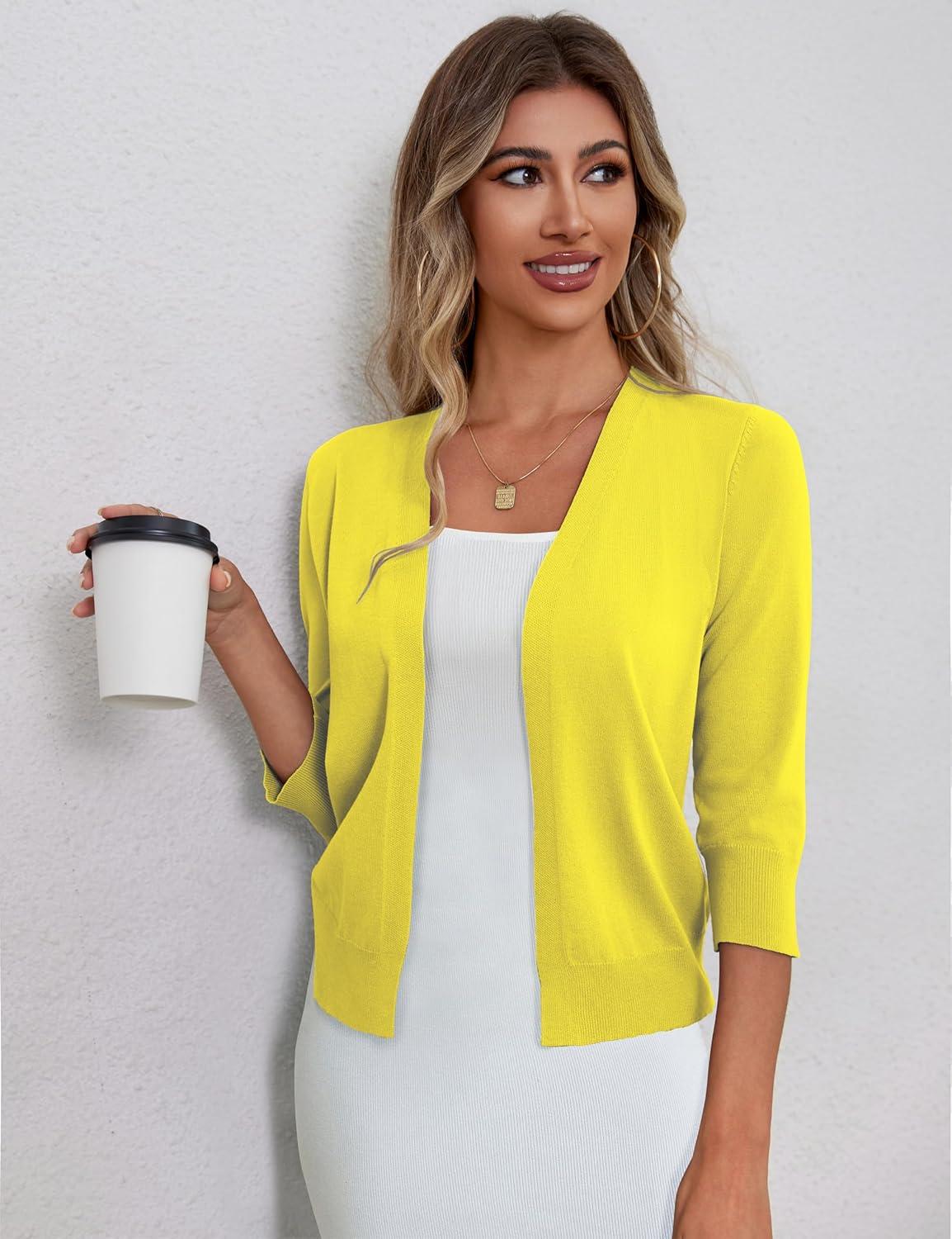 a.Jesdani Shrugs for Women Lightweight 3/4 Sleeve Open Front Red Cropped Cardigan Sweaters(7 Yellow)