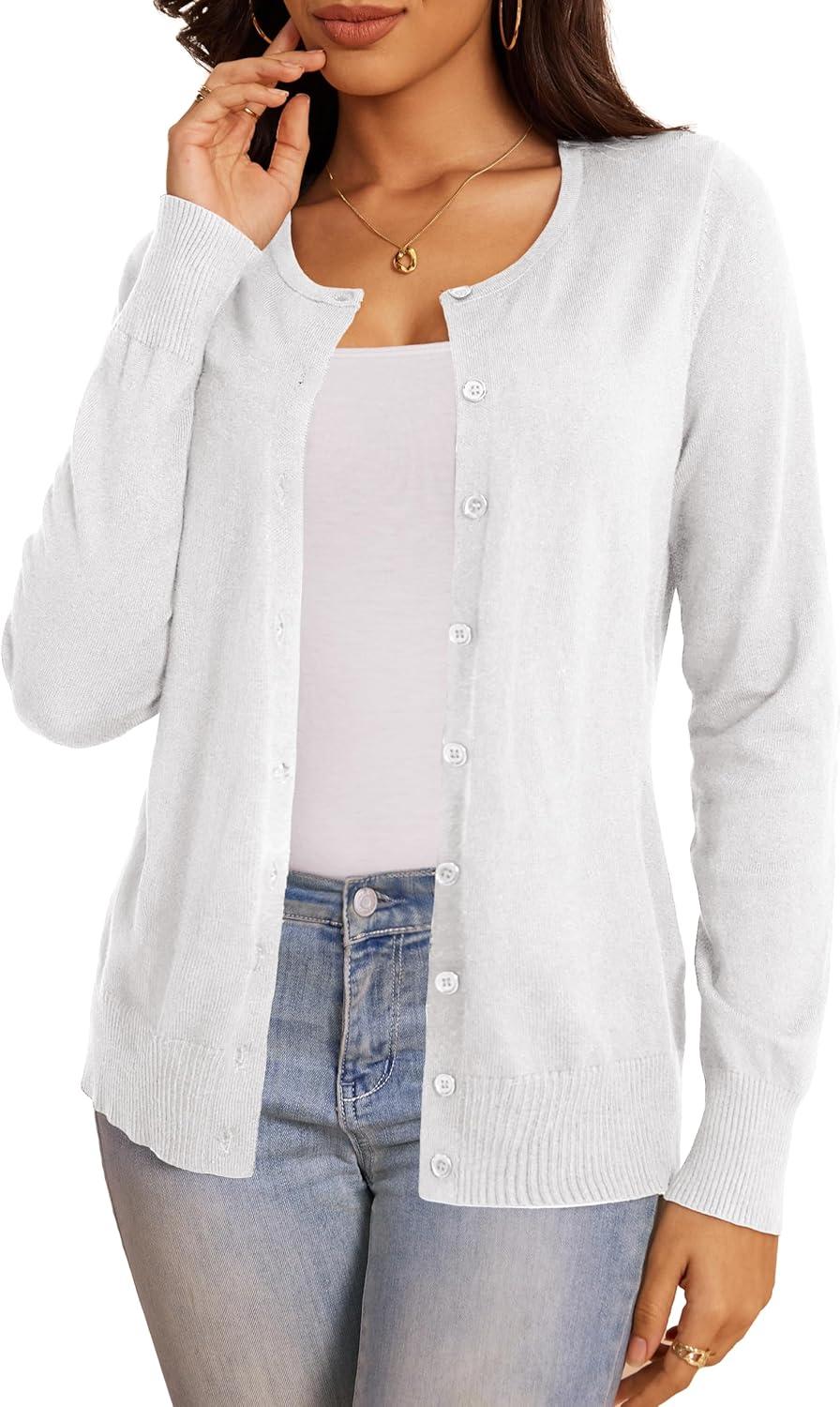 a.Jesdani Women’s Button Down Crew Neck Long Sleeve Soft Knit Cardigan Sweaters(01-c-white)