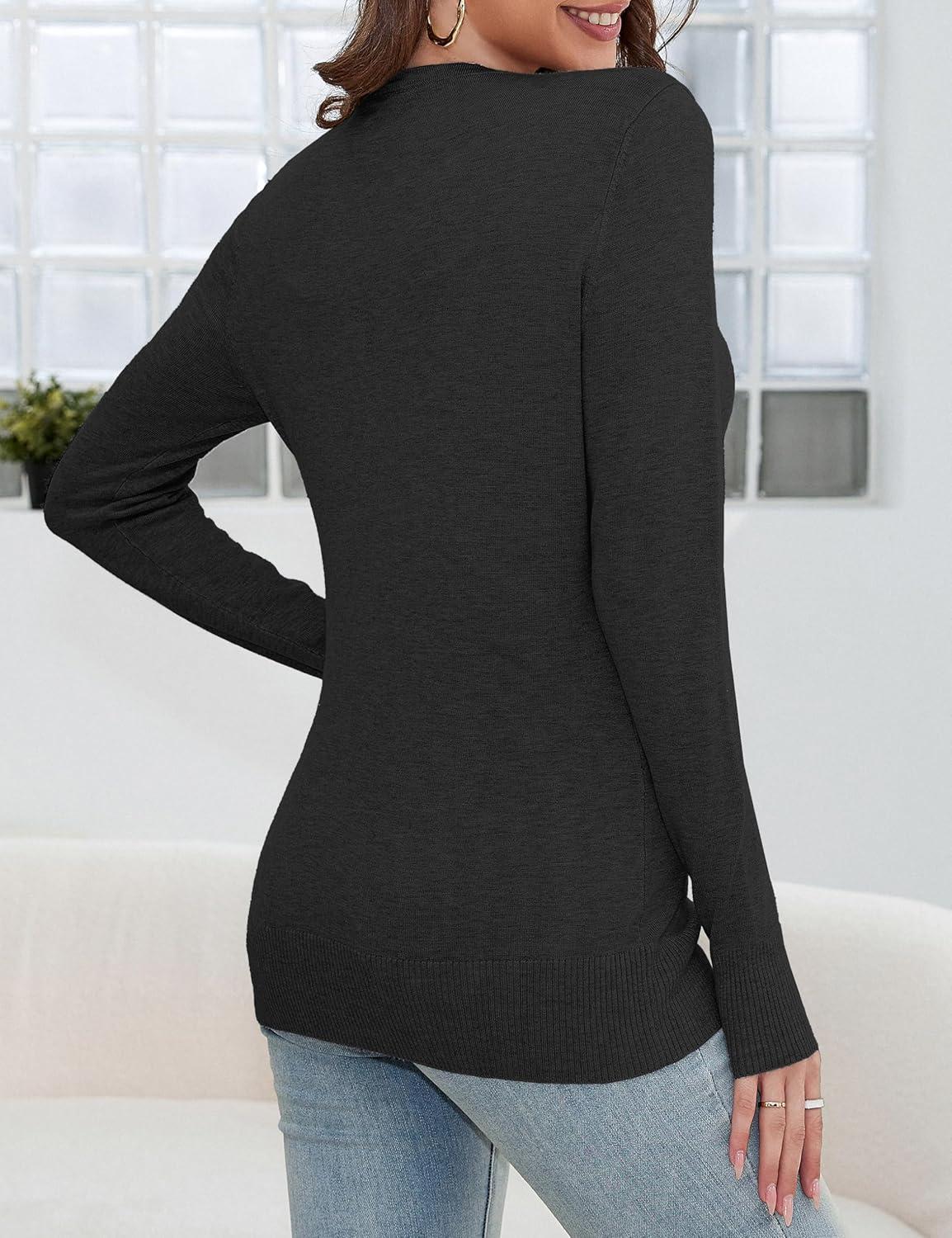 a.Jesdani Women’s Button Down V Neck Long Sleeve Soft Cardigan Sweaters(Black)