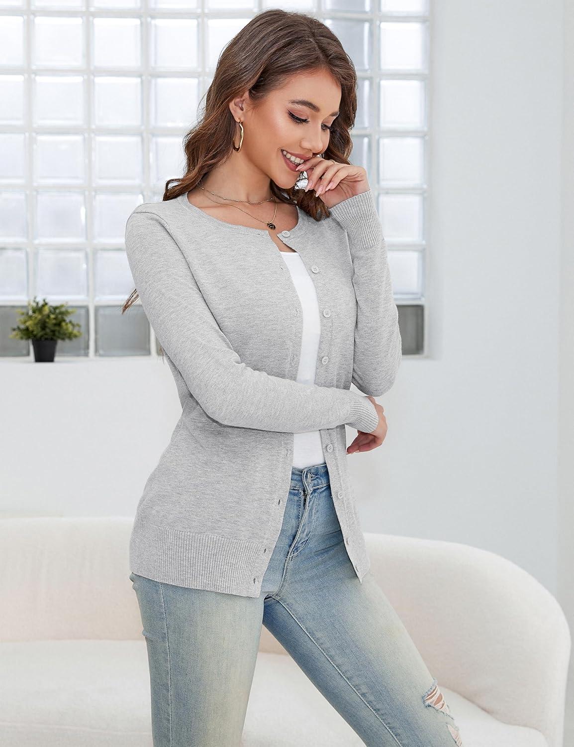 a.Jesdani Women’s Button Down V Neck Long Sleeve Soft Cardigan Sweaters(Light Grey)