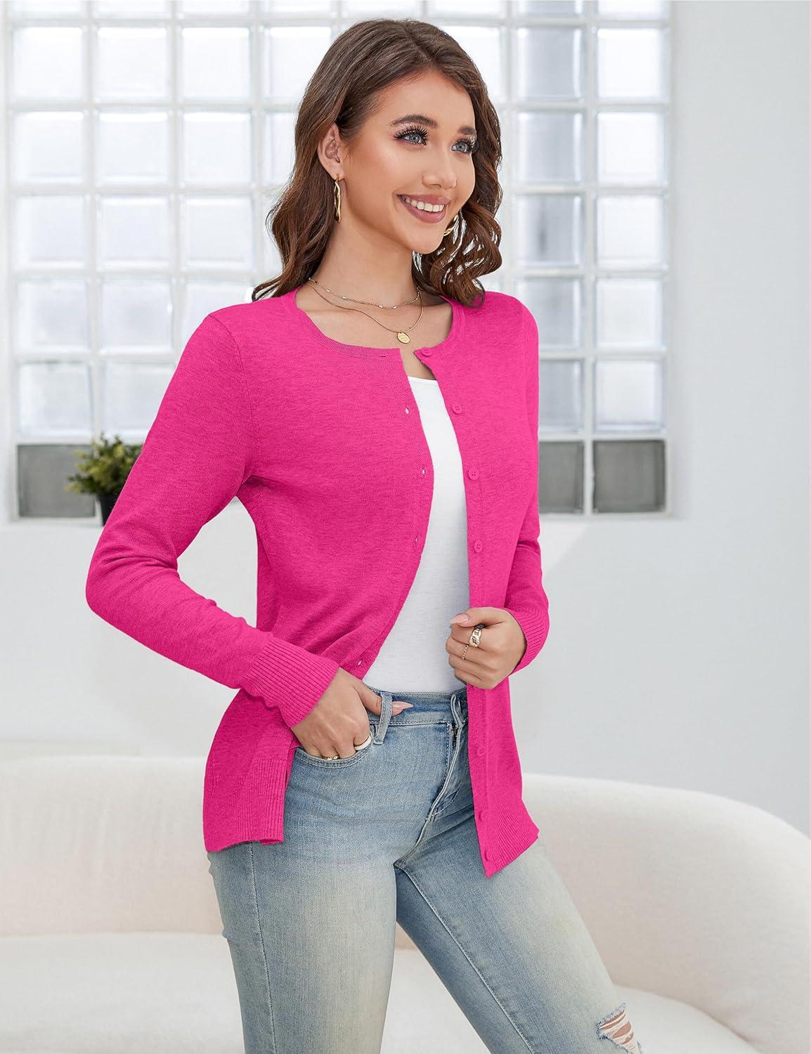 a.Jesdani Women’s Button Down V Neck Long Sleeve Soft Cardigan Sweaters(Rose)