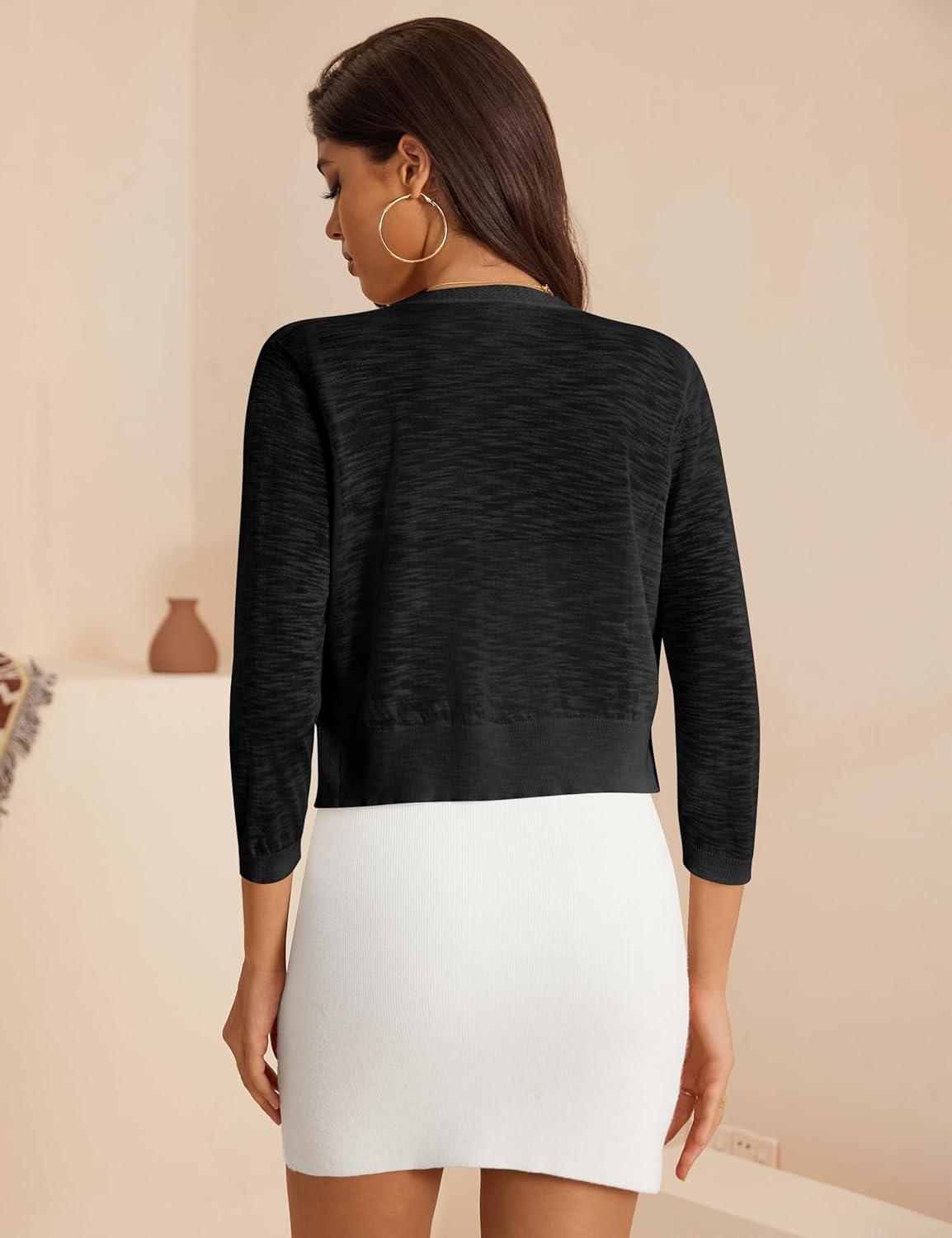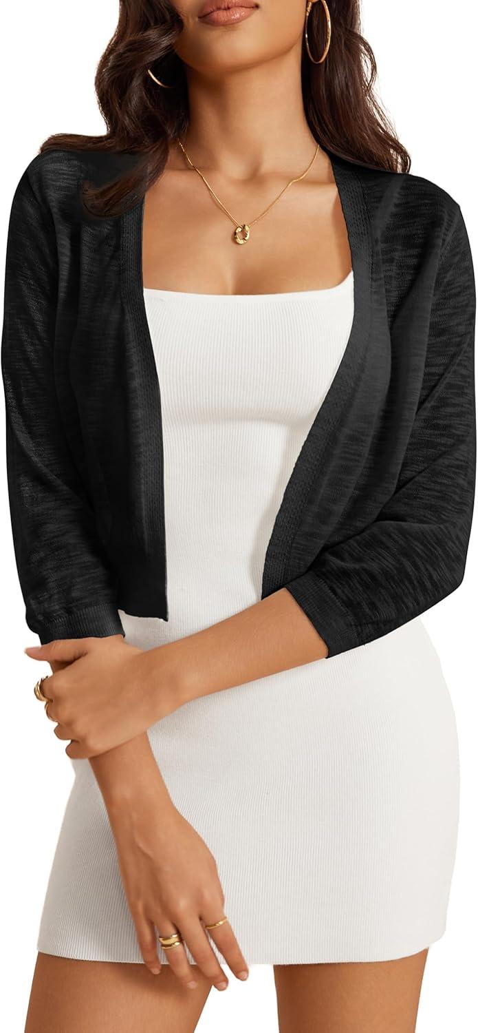 a.Jesdani Women’s Shrug Sweaters Open Front Short Sleeve Rib Knit Bolero Open Front Cardigan S-1X(0 Black)