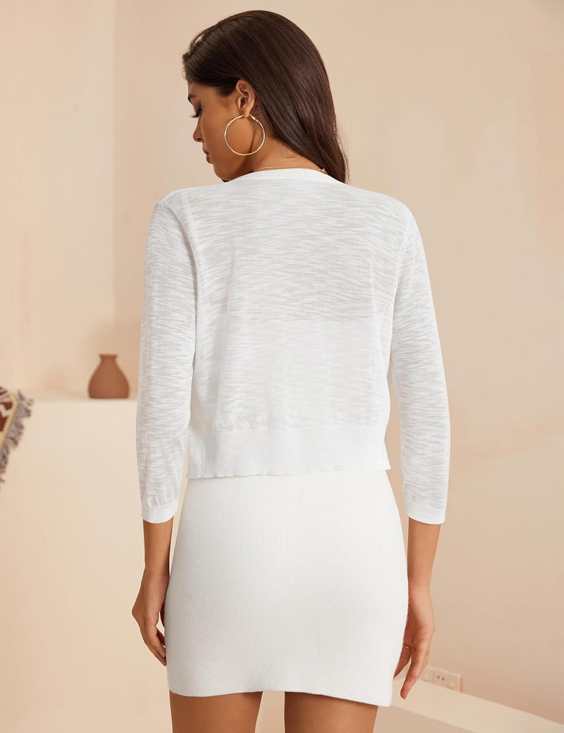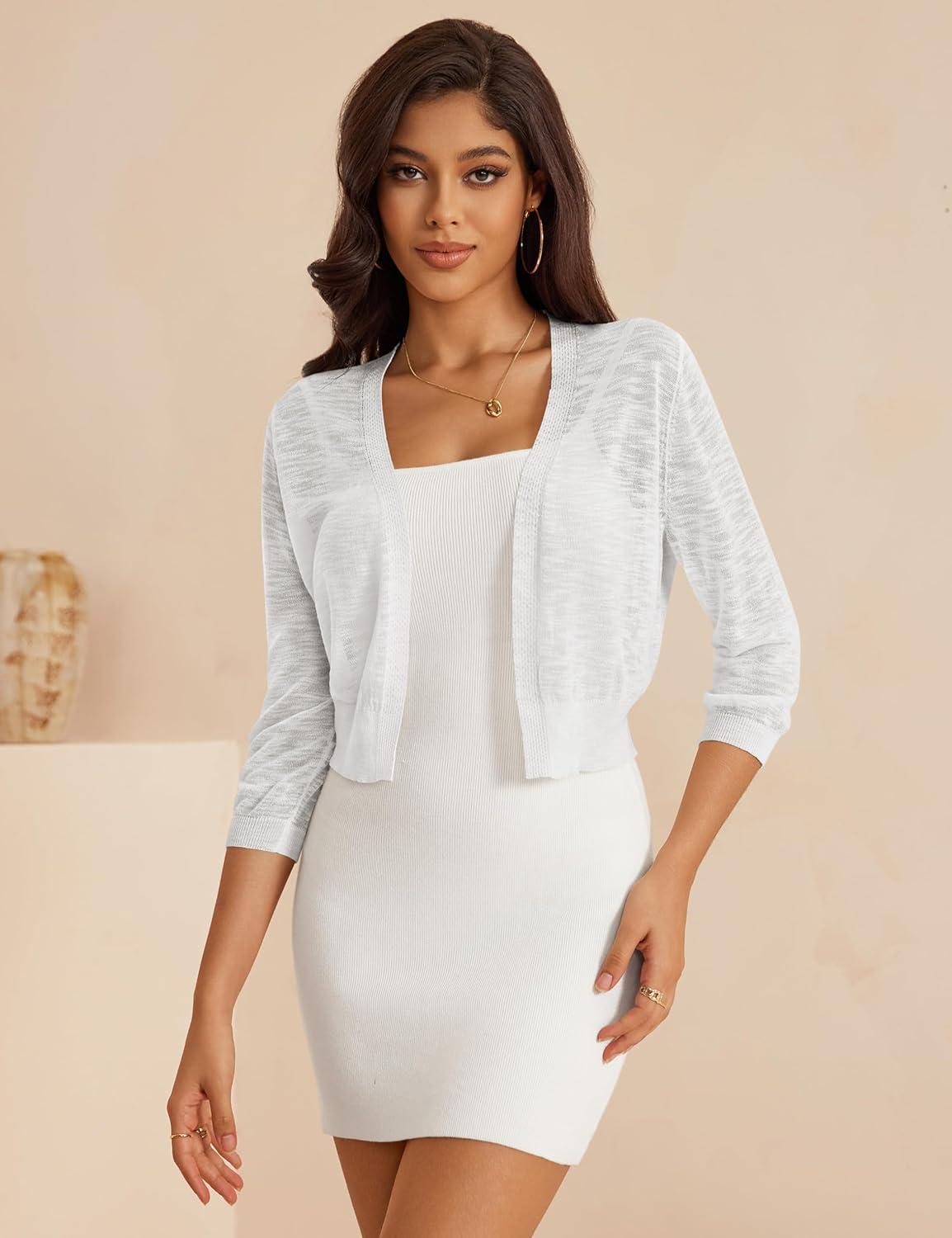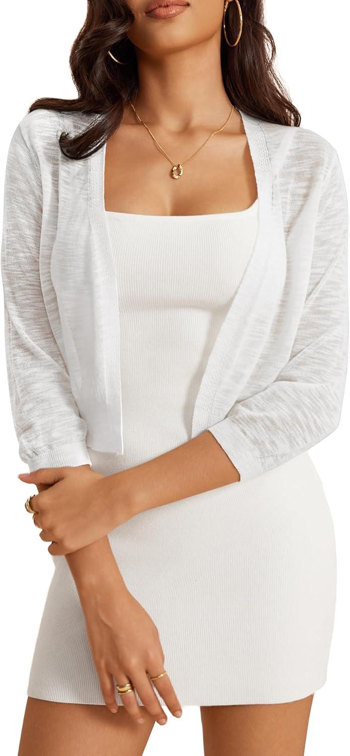 a.Jesdani Women’s Shrug Sweaters Open Front Short Sleeve Rib Knit Bolero Open Front Cardigan S-1X(0 White)