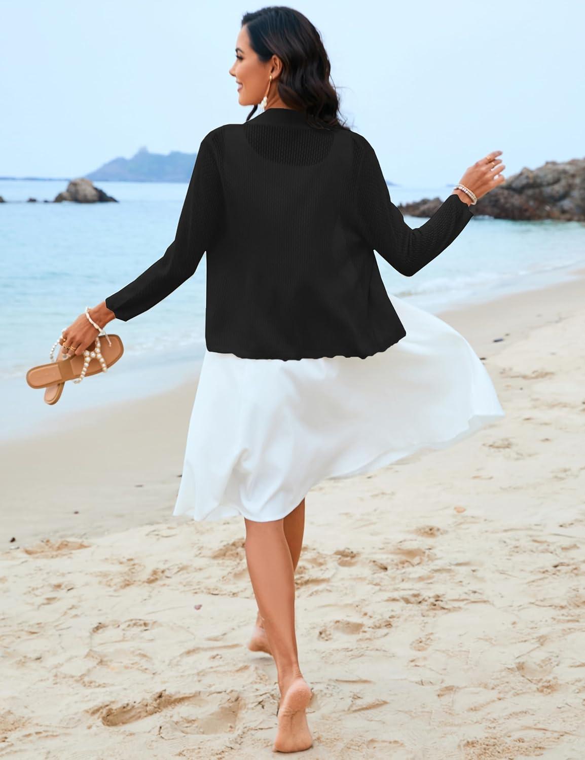a.Jesdani Women’s Shrug Sweaters Open Front Short Sleeve Rib Knit Bolero Open Front Cardigan S-1X(2 Black)