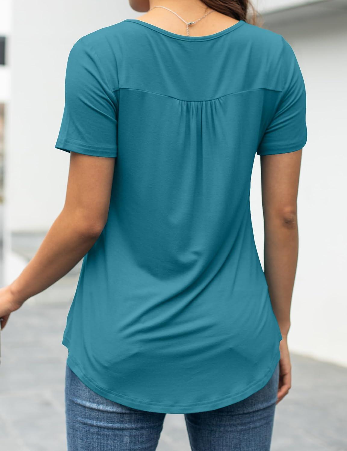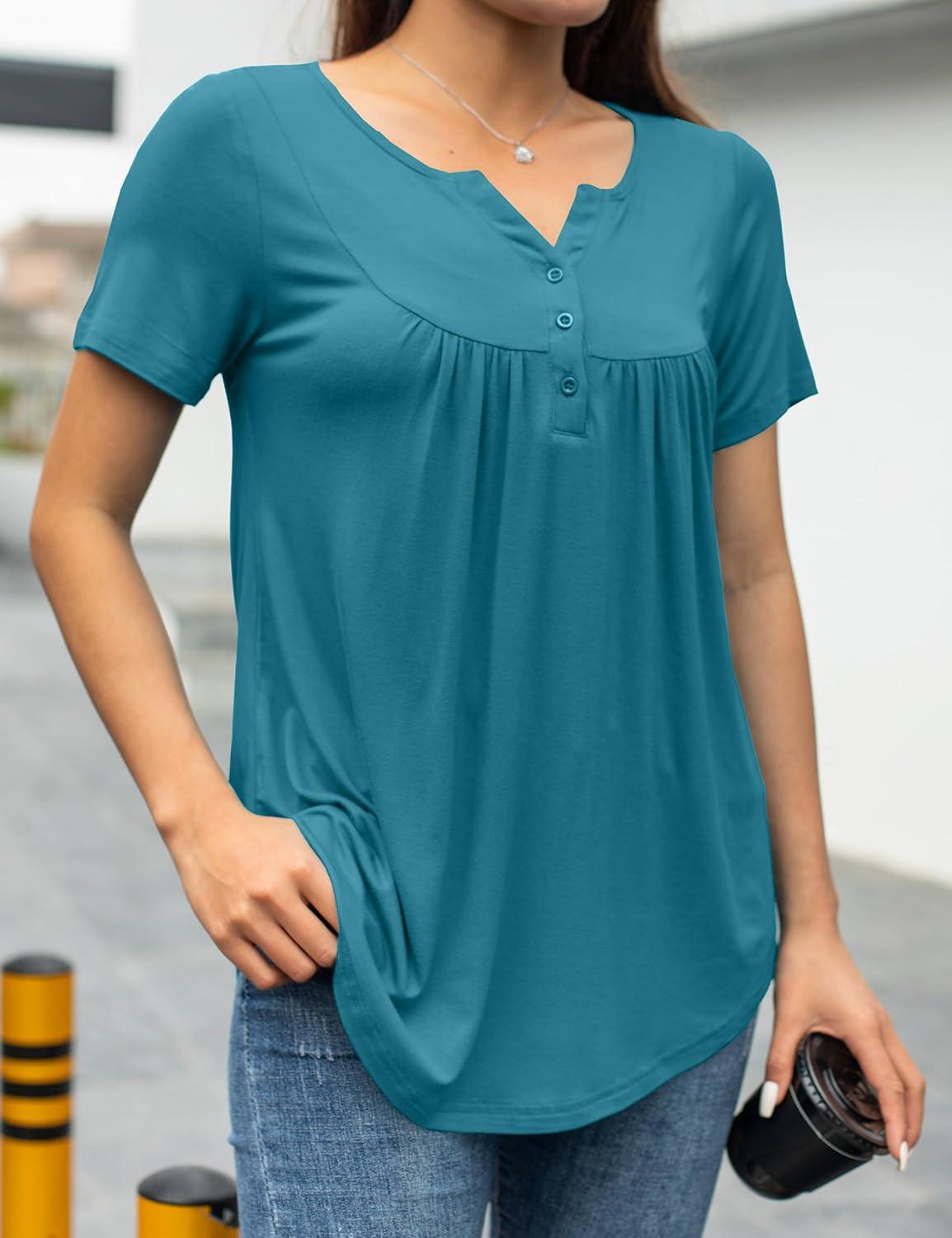 a.Jesdani Womens Summer Plus Size Tunic Tops Short Sleeve Blouses Casual Floral Henley Shirts(Short Sleeve Acid Blue)