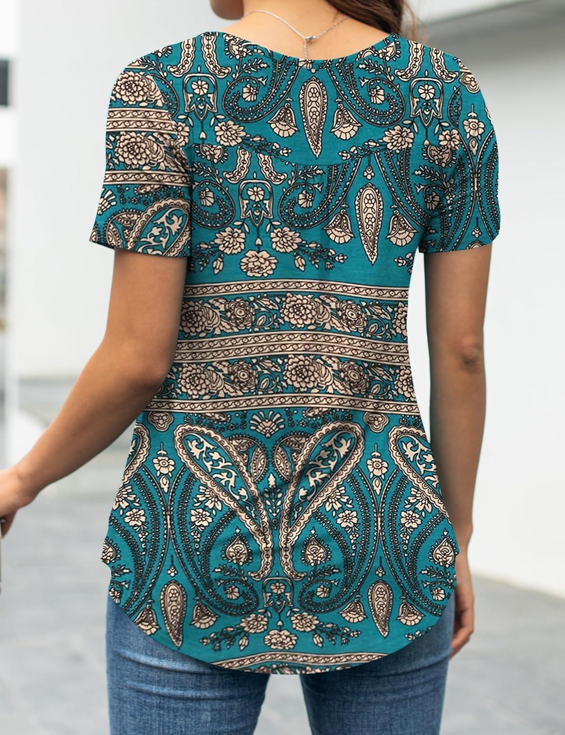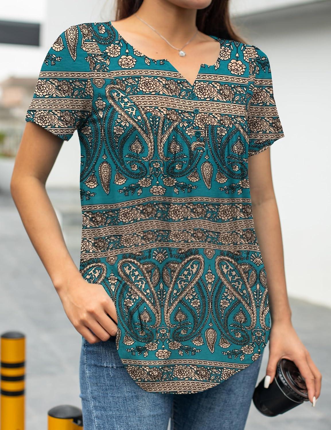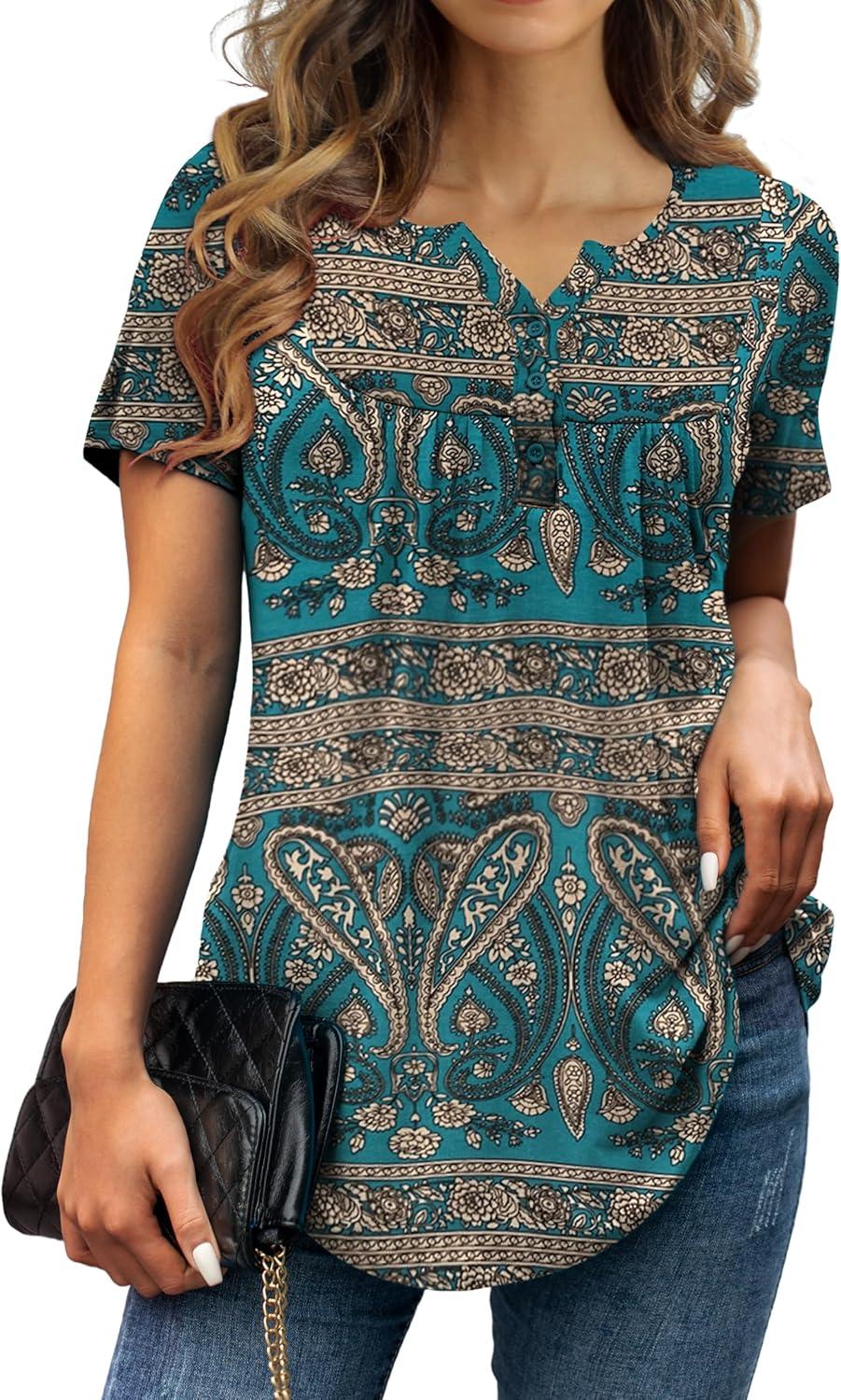 a.Jesdani Womens Summer Plus Size Tunic Tops Short Sleeve Blouses Casual Floral Henley Shirts(Short Sleeve Multi Green)