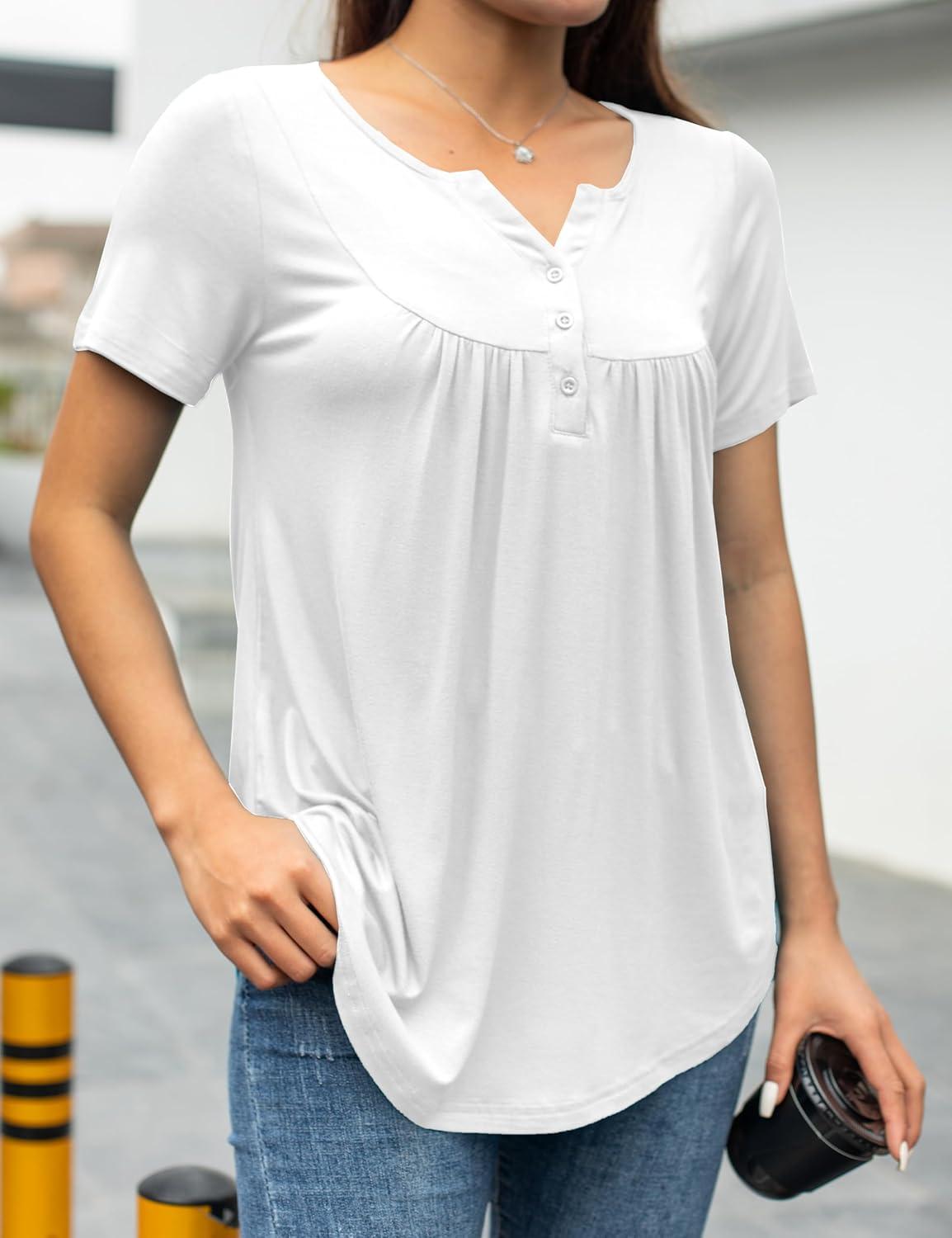 a.Jesdani Womens Summer Plus Size Tunic Tops Short Sleeve Blouses Casual Floral Henley Shirts(Short Sleeve White)