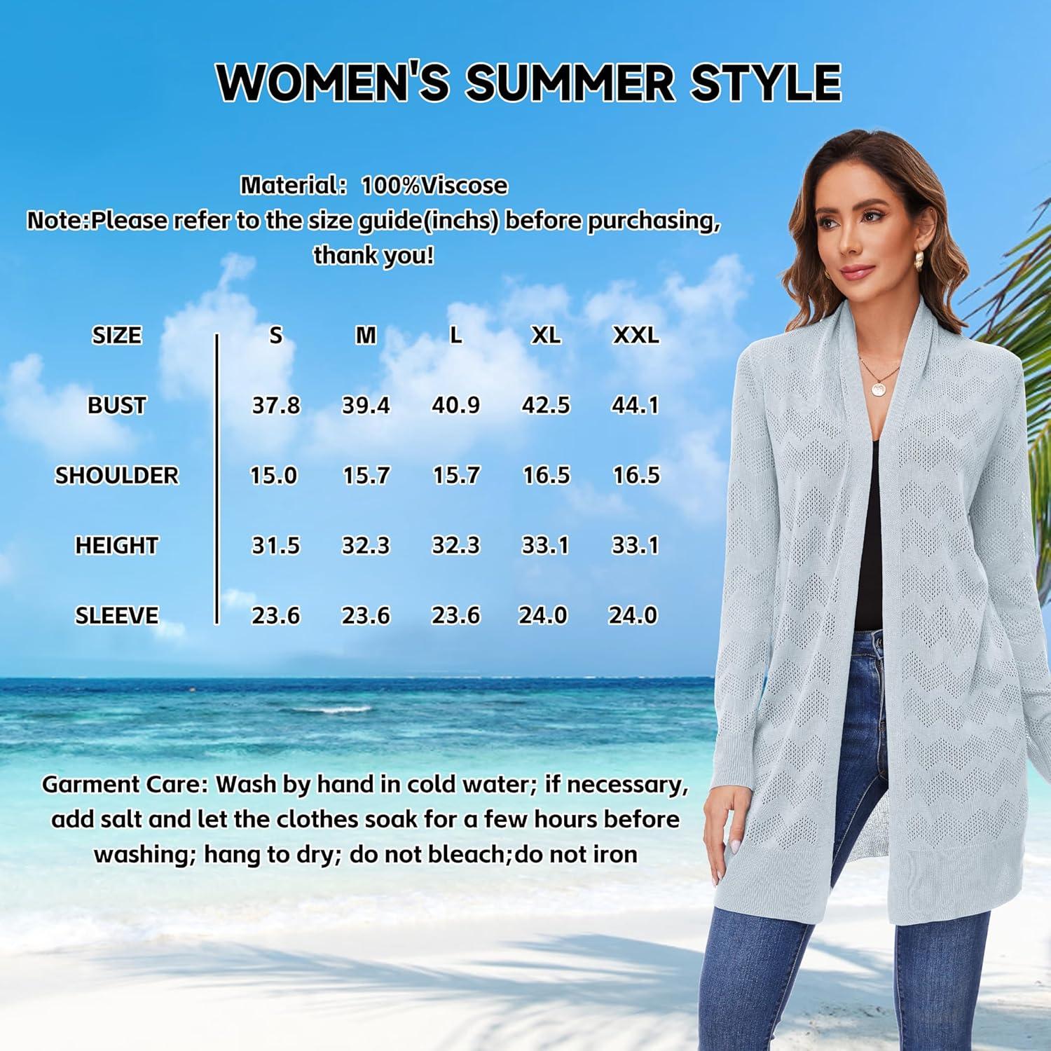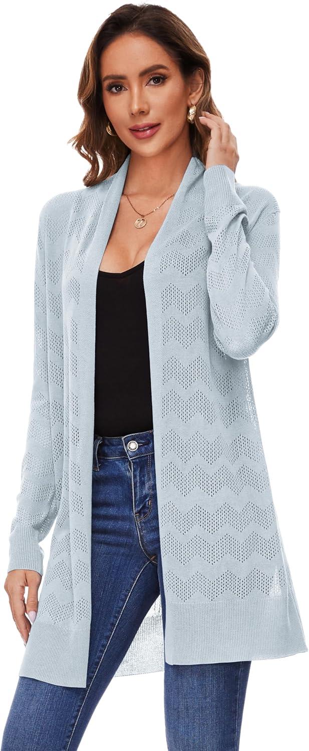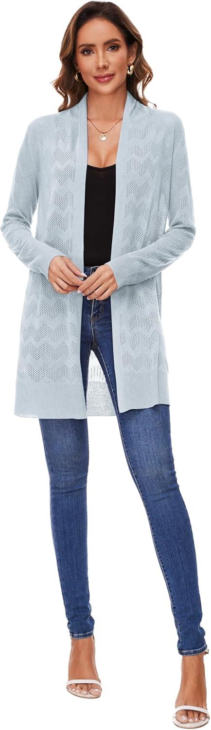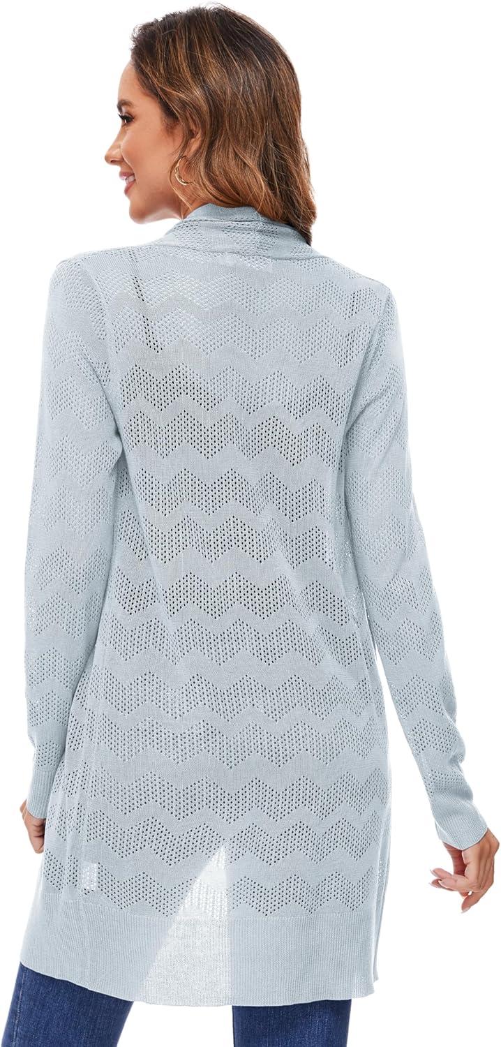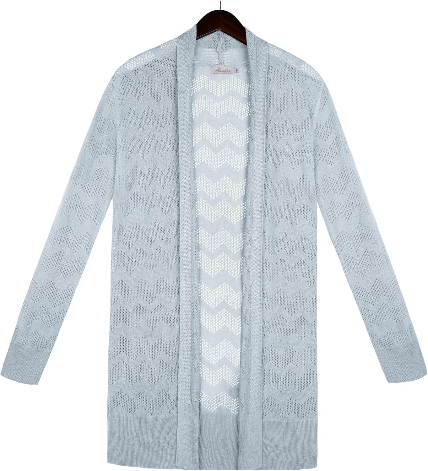 Women’s Lightweight Summer Crochet Open Front Long Shawl Cardigan Hollow-Out Sweater(2404-grayish Blue)