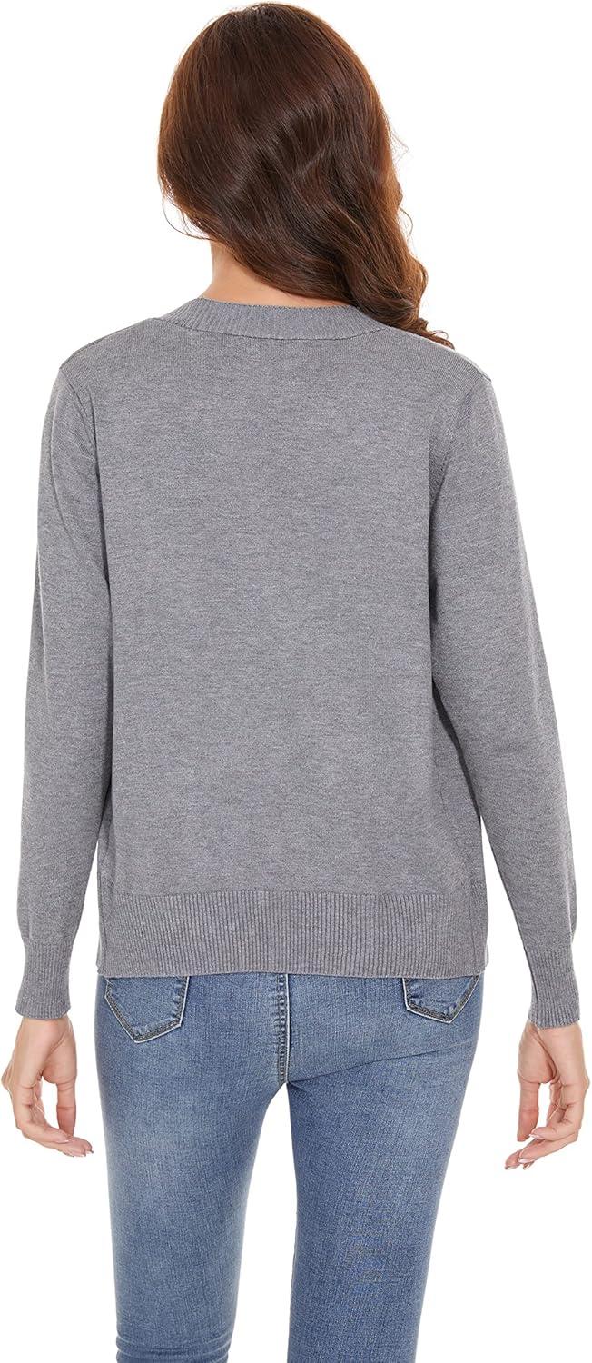 Women’s V Neck Button Down Long Sleeve Cardigan Sweater(V-gray)